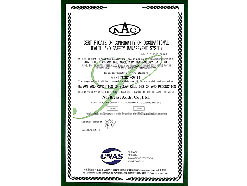 職業(yè)健康安全管理體系認(rèn)証証明書(中國(guó)語)
