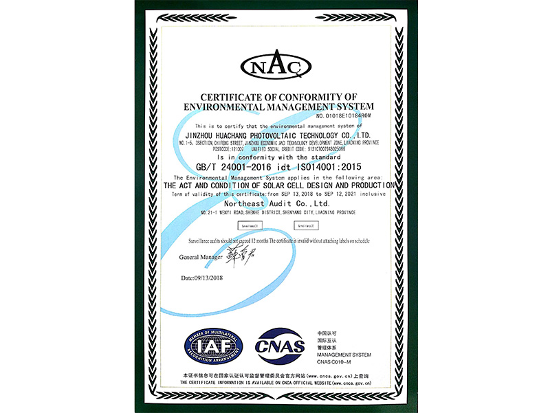 環(huán)境管理體系認(rèn)証証明書(中國(guó)語(yǔ))