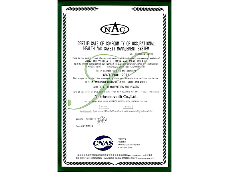 職業(yè)健康安全管理體系認(rèn)証証明書(中國語)