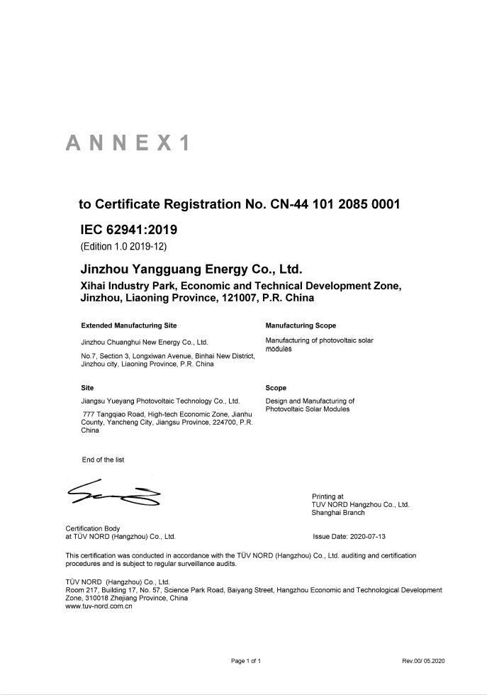 IEC 62941管理體系証明書(中國語)