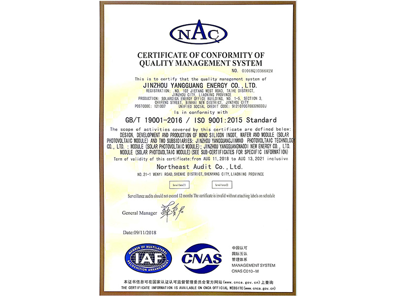 質(zhì)量管理體系認(rèn)證證書(中文)